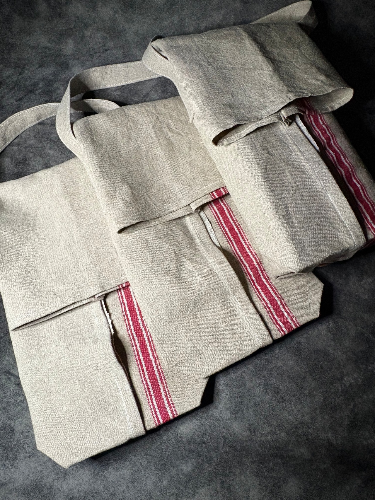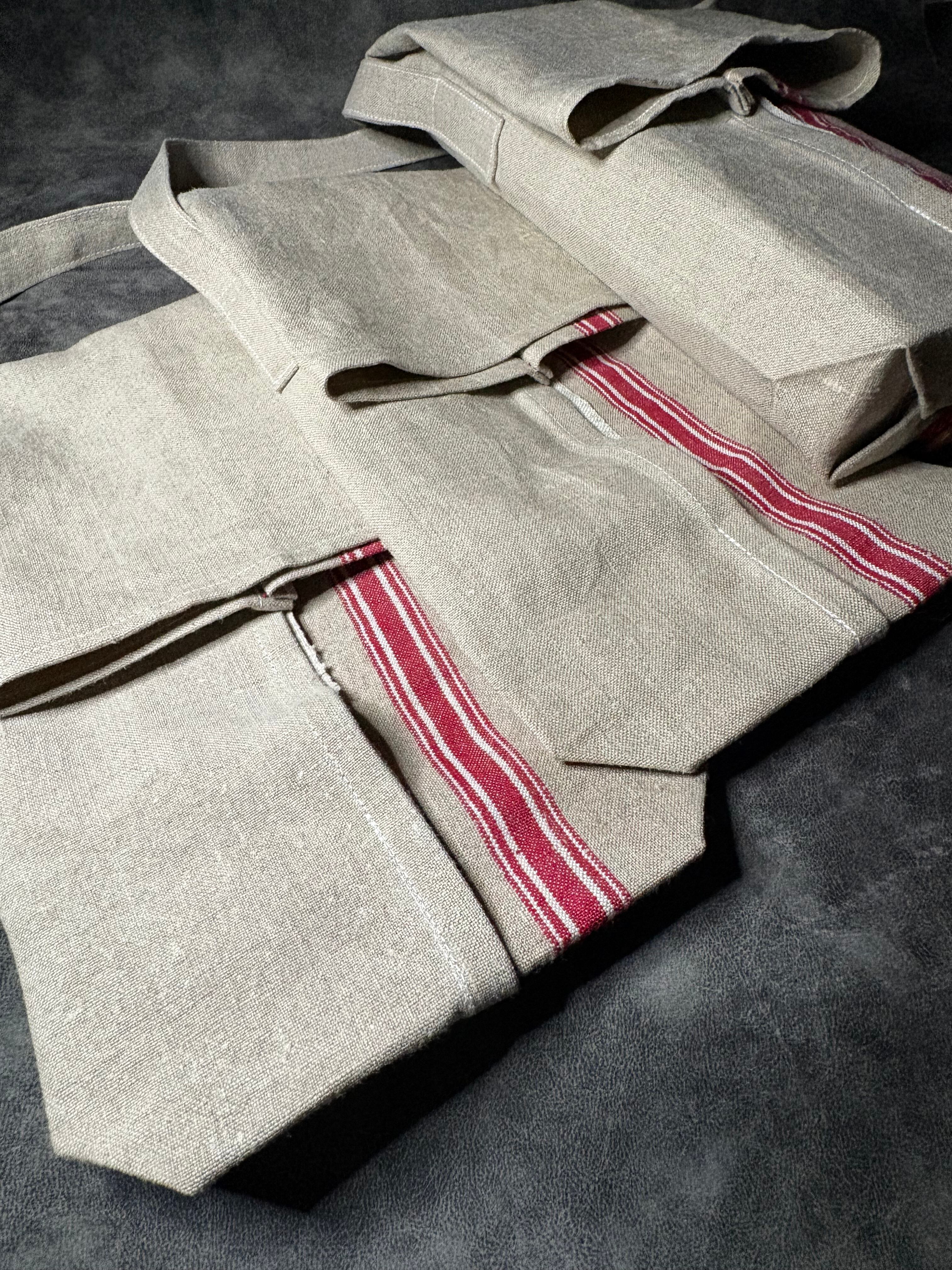 麻色の中に走る赤いラインが印象的で、シンプルながらも温かみのあるデザインです。