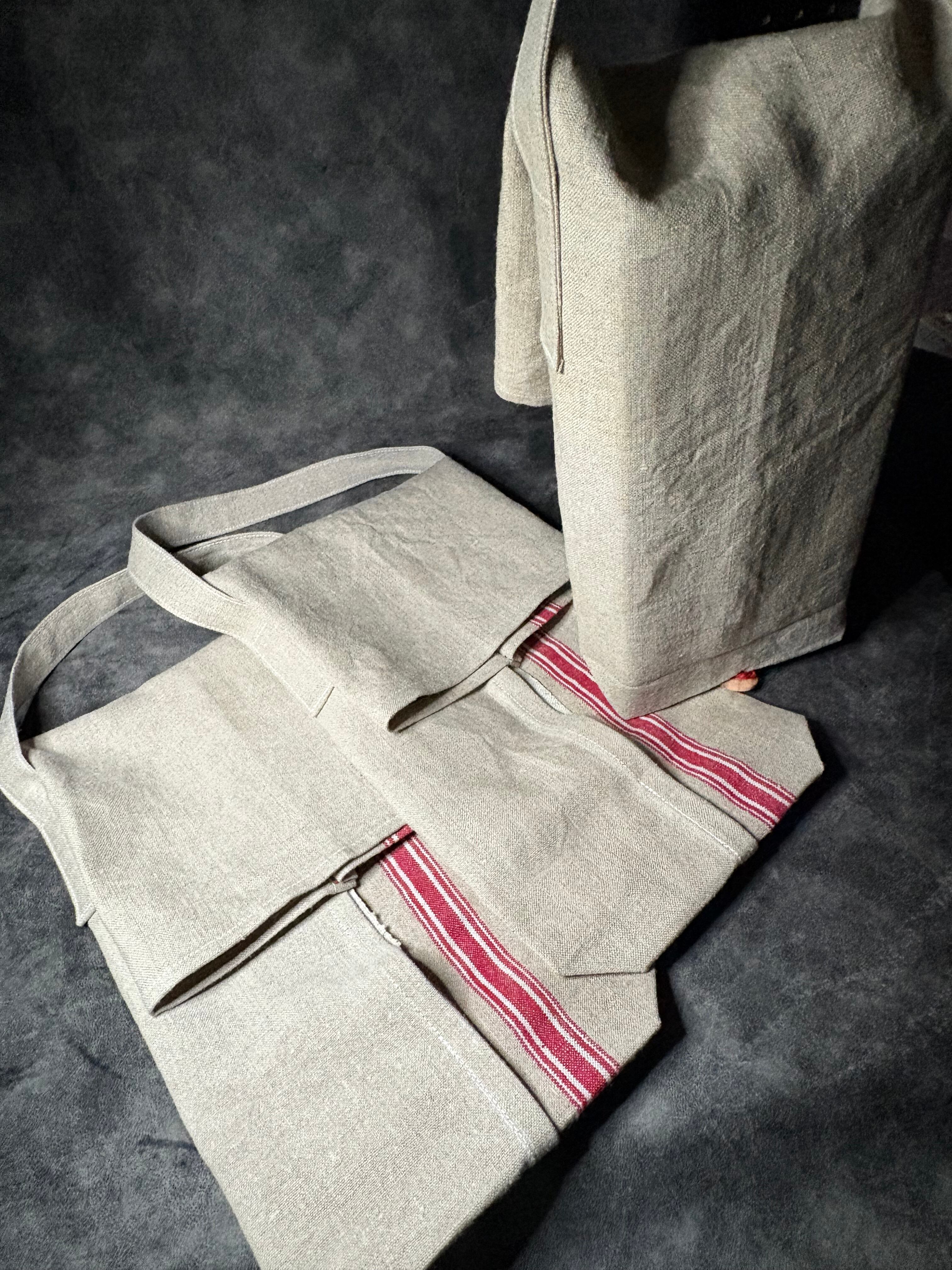 麻色の中に走る赤いラインが印象的で、シンプルながらも温かみのあるデザインです。