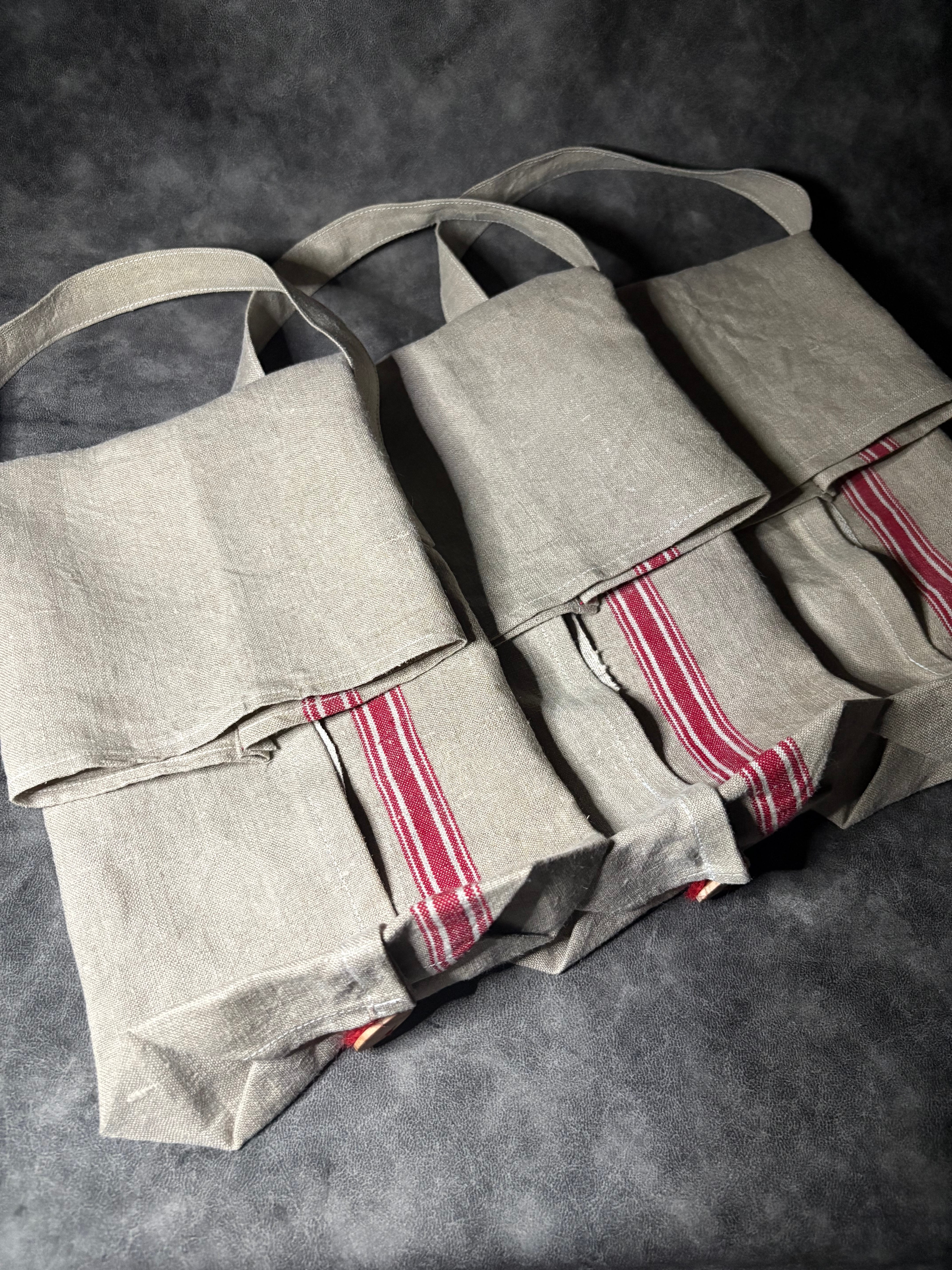 3.アンティーク生地のボックスティッシュケース【C-3やわらか生成のストライプレッド】