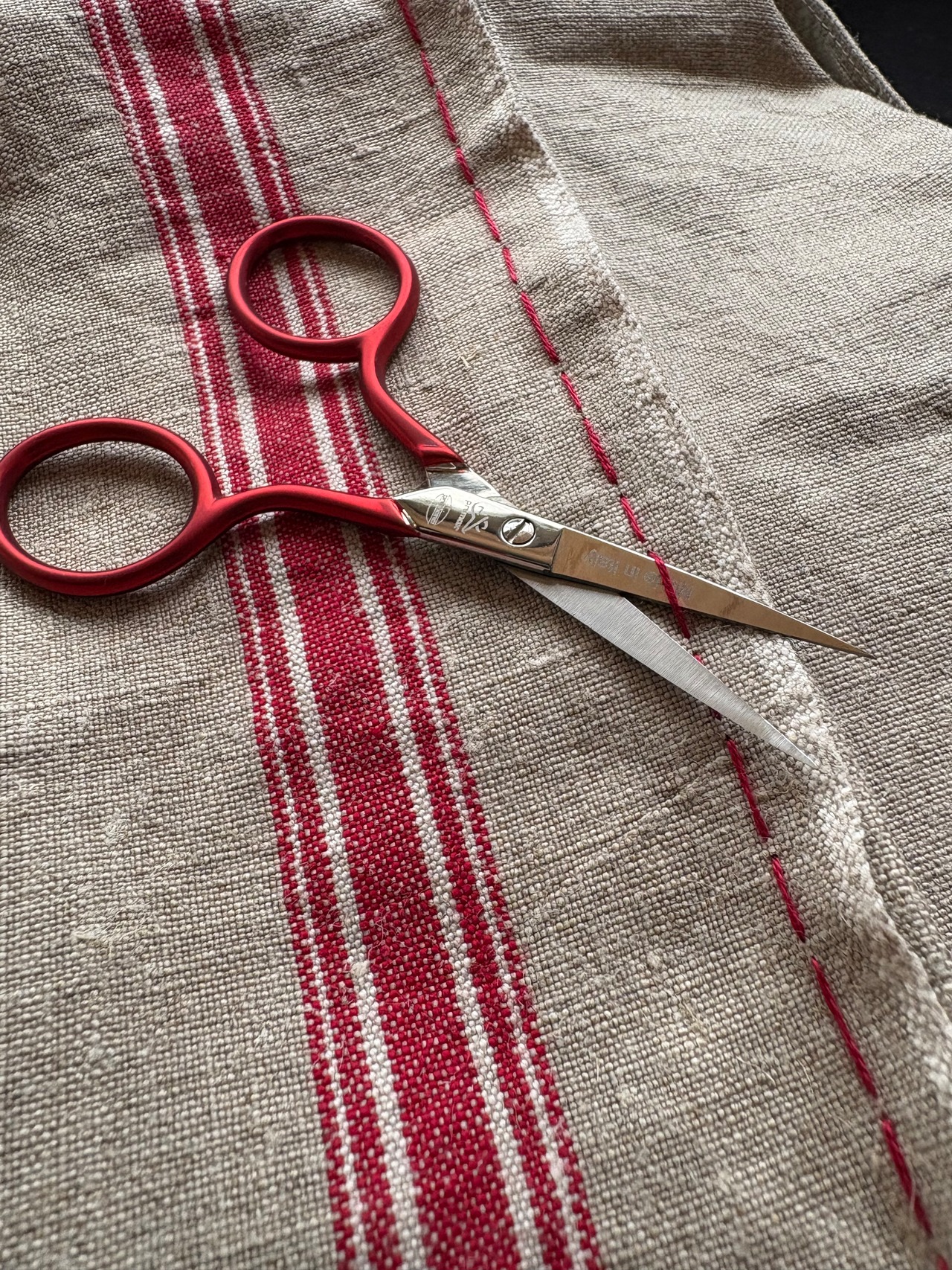 刺繍をされる際は、一度赤い糸を外していただくと作業がしやすくなります。
